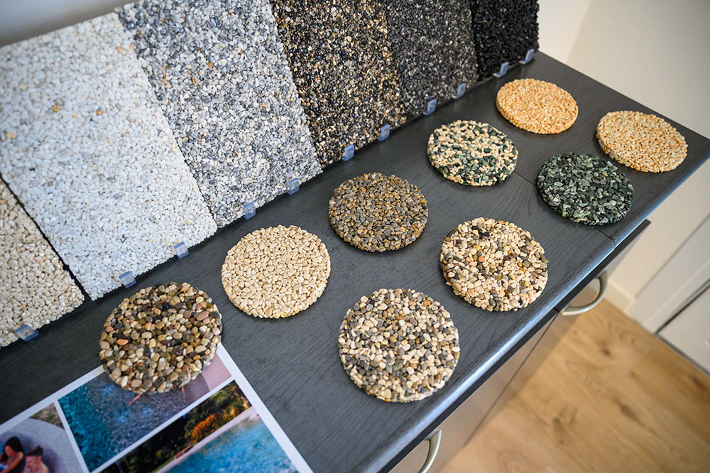 Il marmo drenante è una soluzione architettonica composta da un mix di graniglie e ciottoli di marmo naturale, legati da una resina ad alte prestazioni.