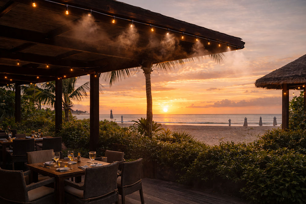 Tubazioni a basso impatto visivo e ugelli di precisione trasformano la miscela in micro-gocce uniformi, garantendo una copertura efficace dell’area.